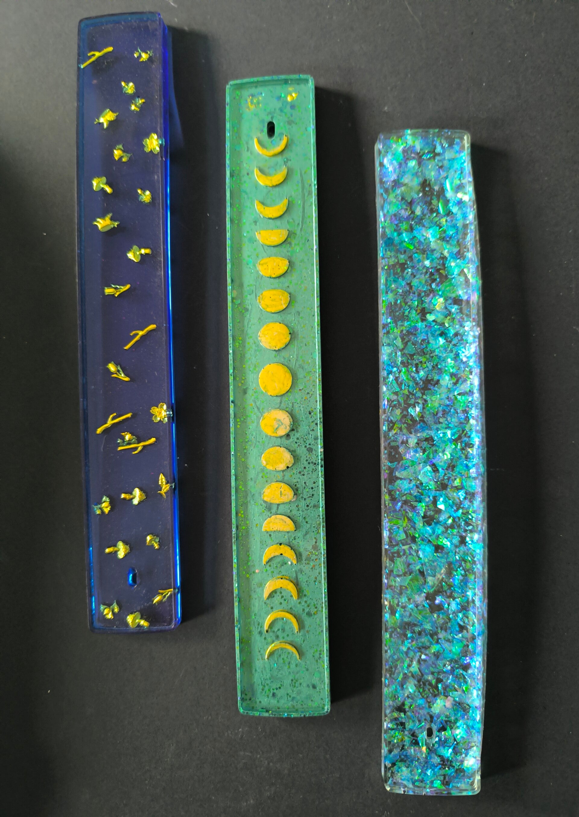 En résine époxy. Pour faire brûler les bâtons d'encens. Attention, juste les bâtons, pas les cônes ni l'encens en grains ou en résine !