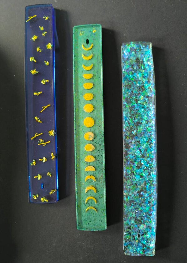 En résine époxy. Pour faire brûler les bâtons d'encens. Attention, juste les bâtons, pas les cônes ni l'encens en grains ou en résine !